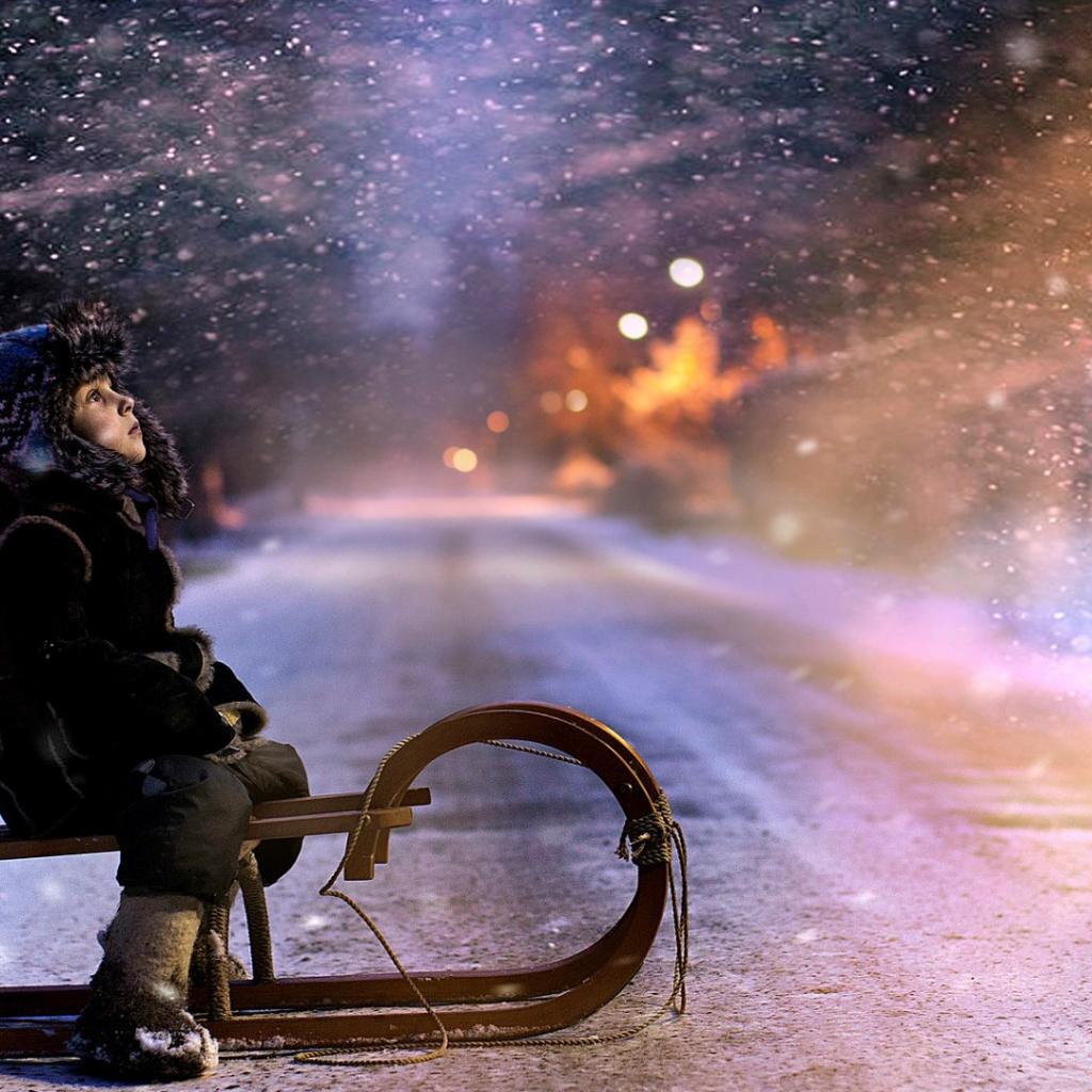 Обои Мальчик катается на санках