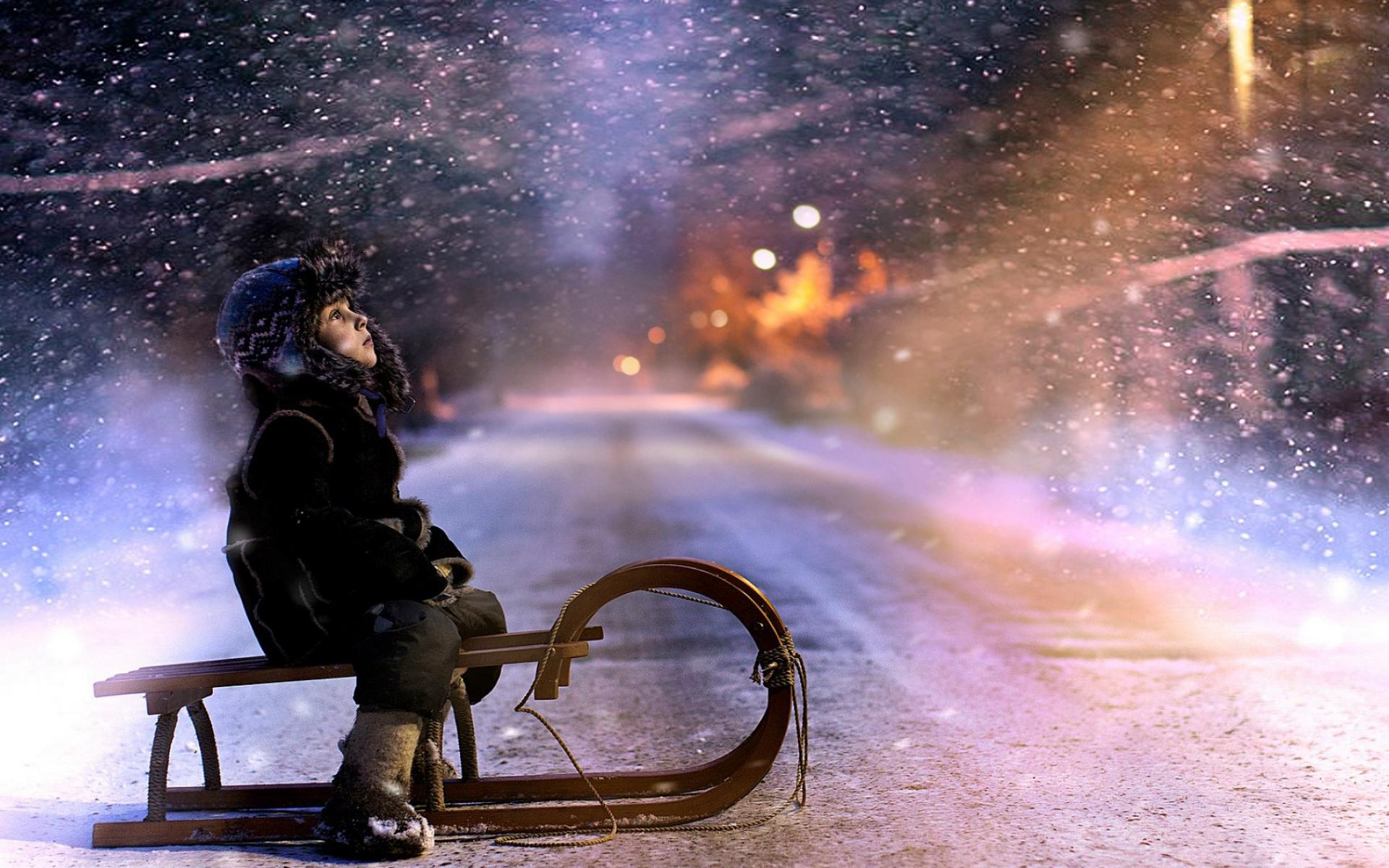 Обои Мальчик катается на санках