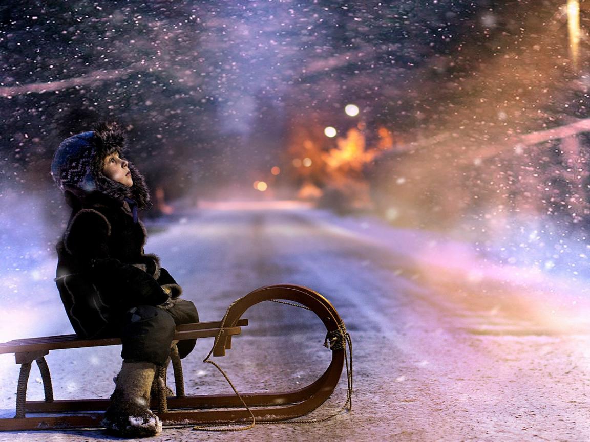 Обои Мальчик катается на санках