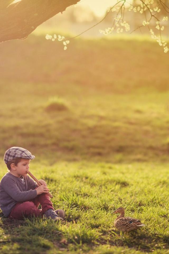 Обои Мальчик играет на флейте