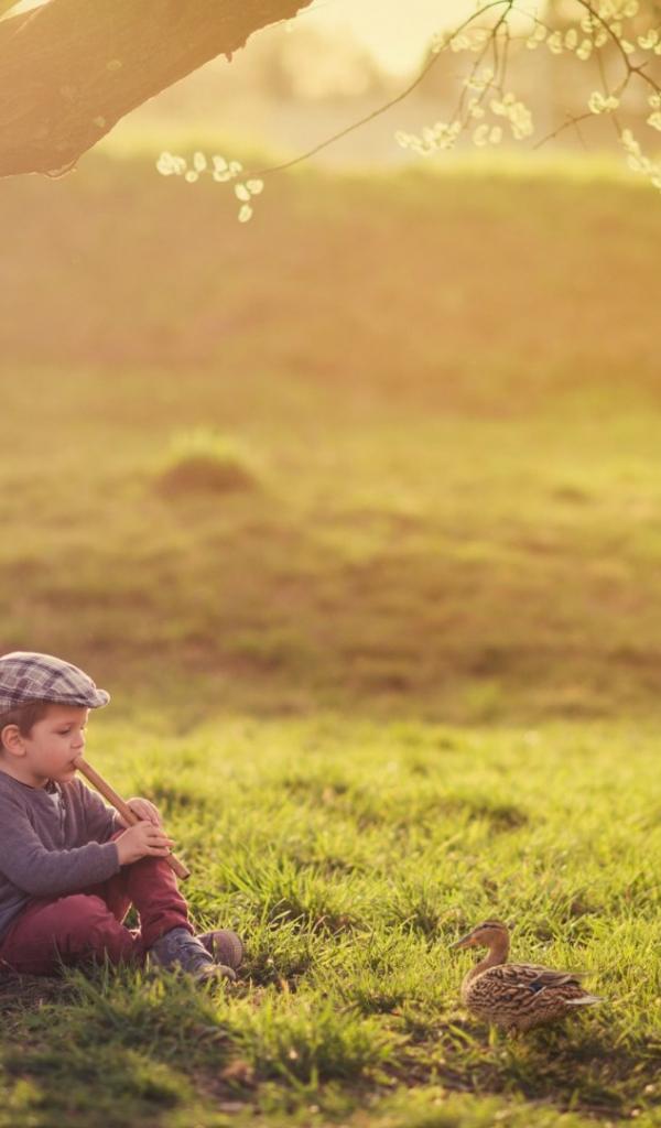 Обои Мальчик играет на флейте