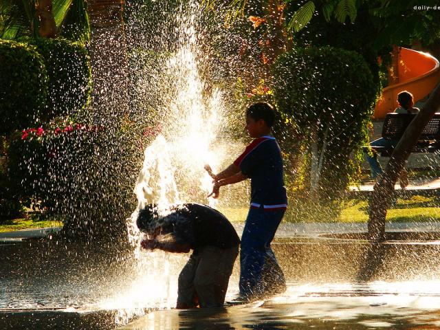 Обои Дети обливаются водой