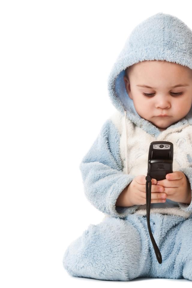 Обои Малыш с телефоном