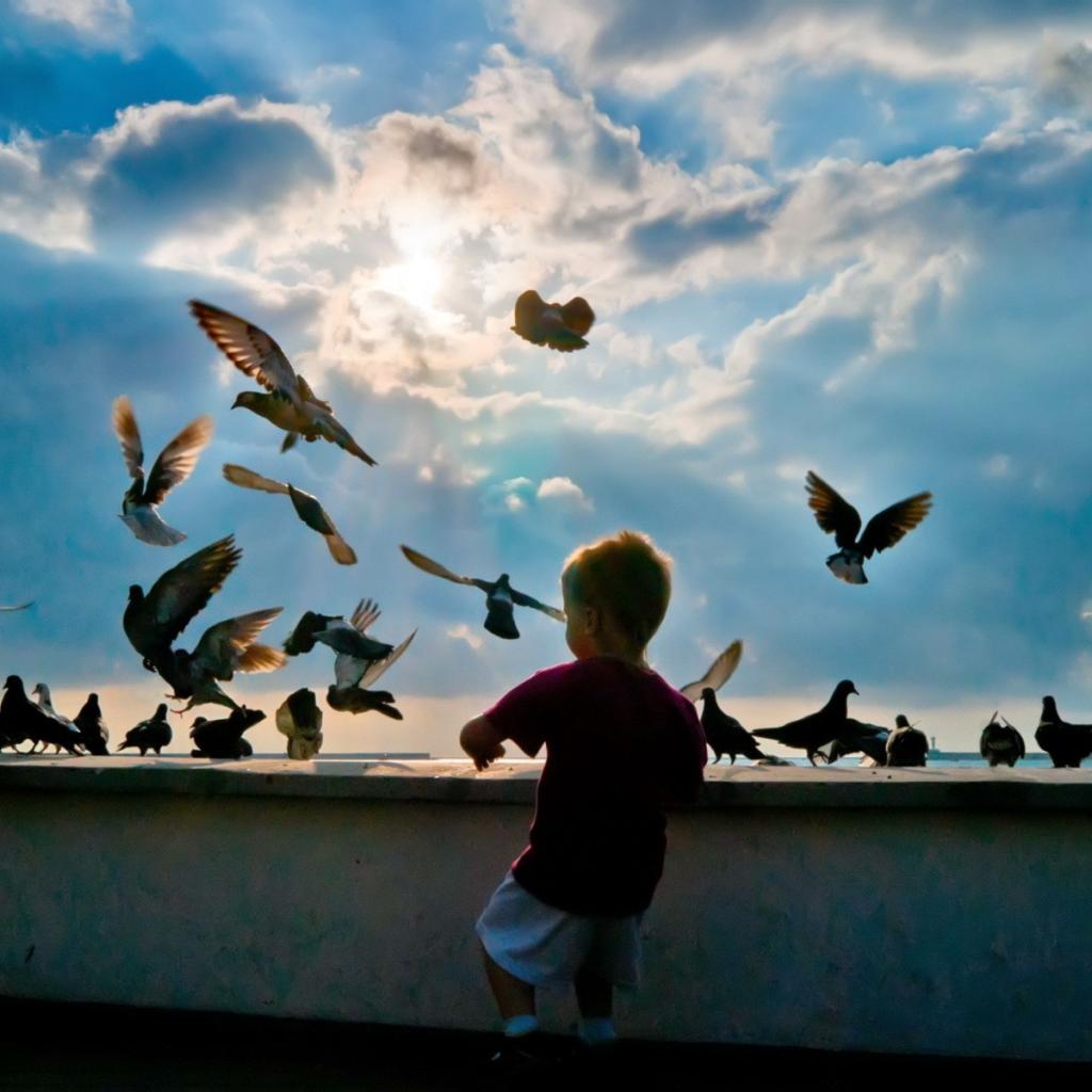 Обои Ребенок и голуби