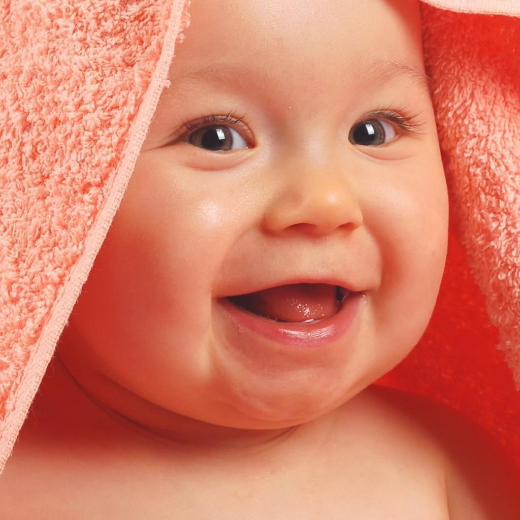 Обои Ребенок в полотенце смеется