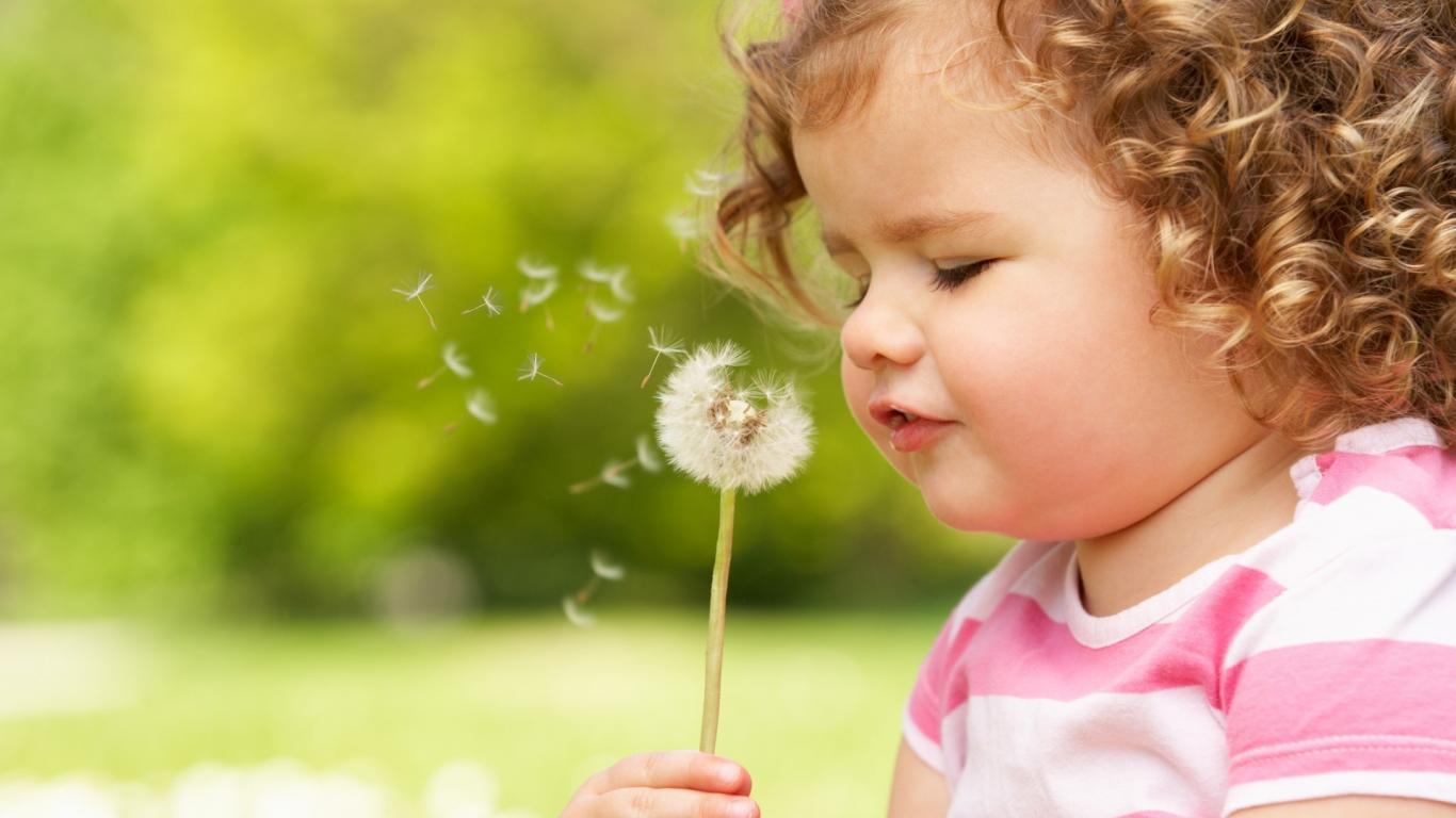 Обои Ребенок дует на одуванчик