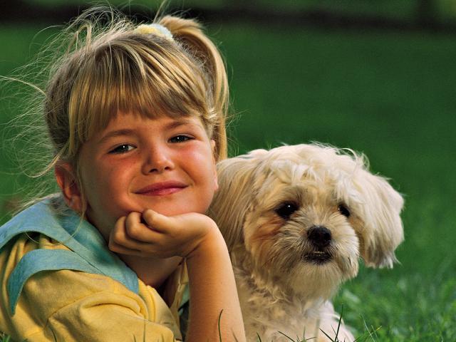 Обои Девочка с белой собакой