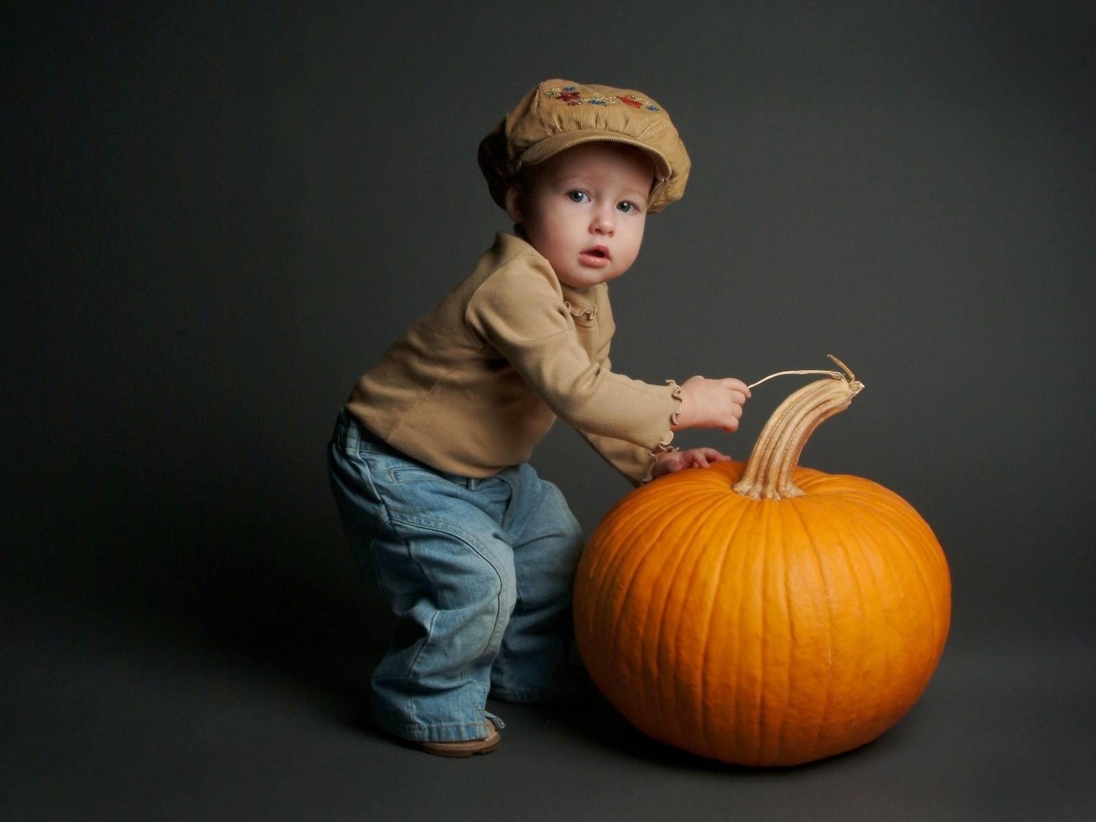 Обои Малыш и тыква