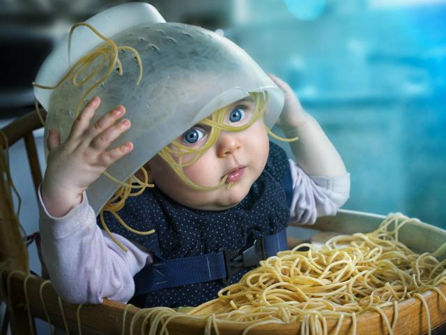 Обои Ребенок с лапшой