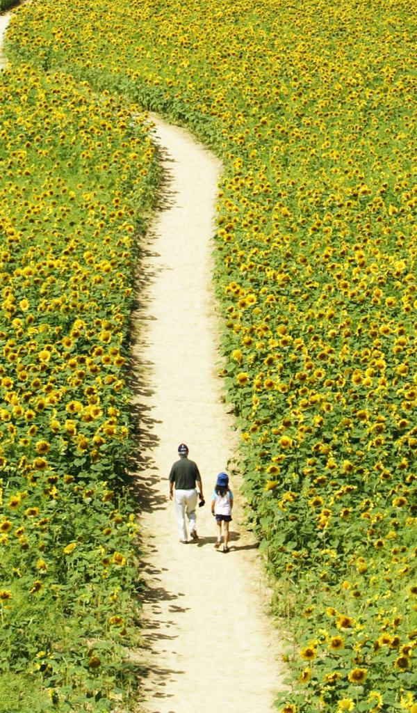 Обои Прогулка через поле подсолнечников