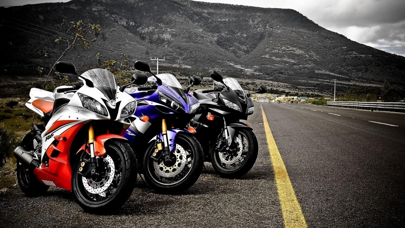 Обои Три мотоцикла на обочине шоссе