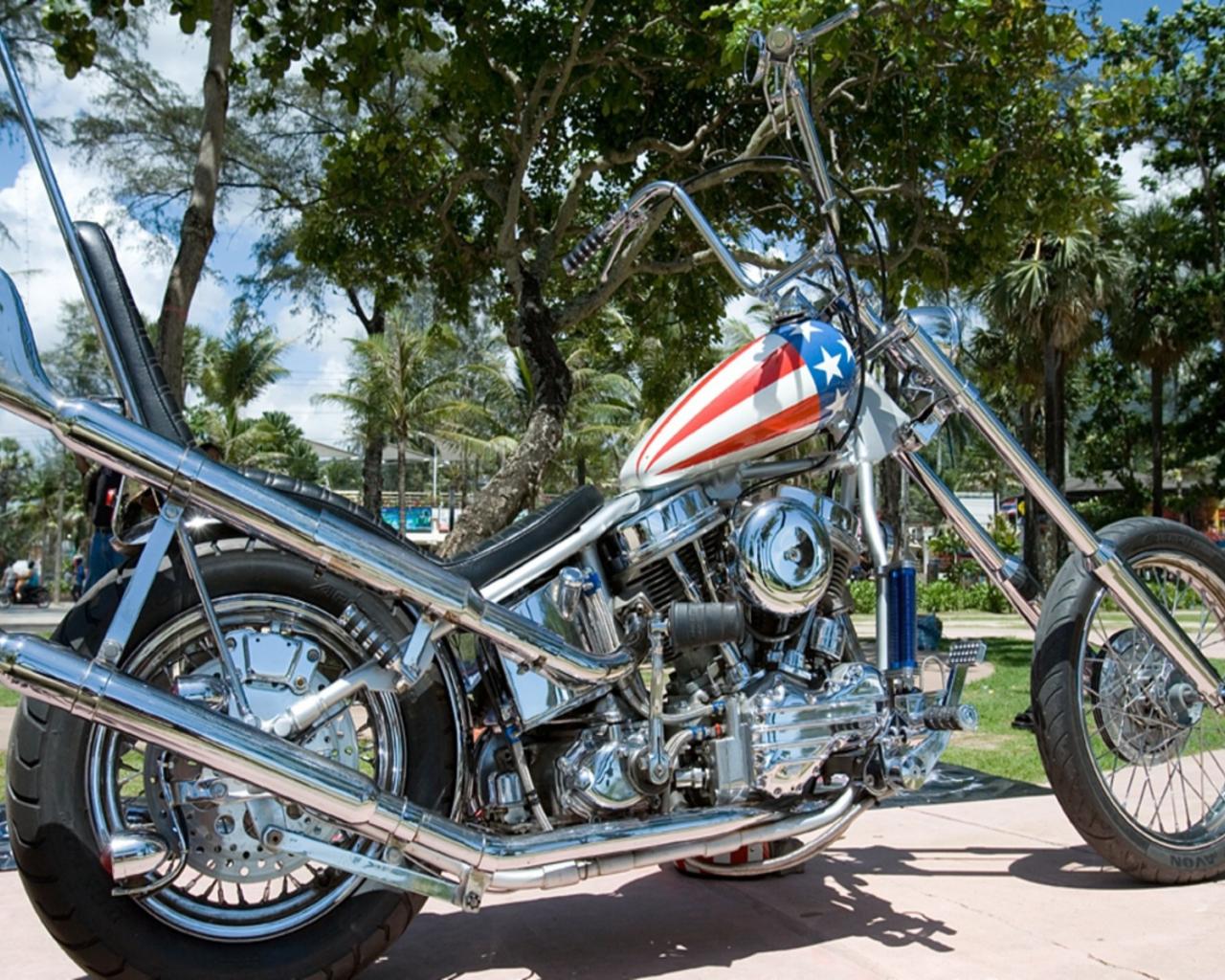 Обои Мотоцикл Harley Davidson с флагом на бензобаке