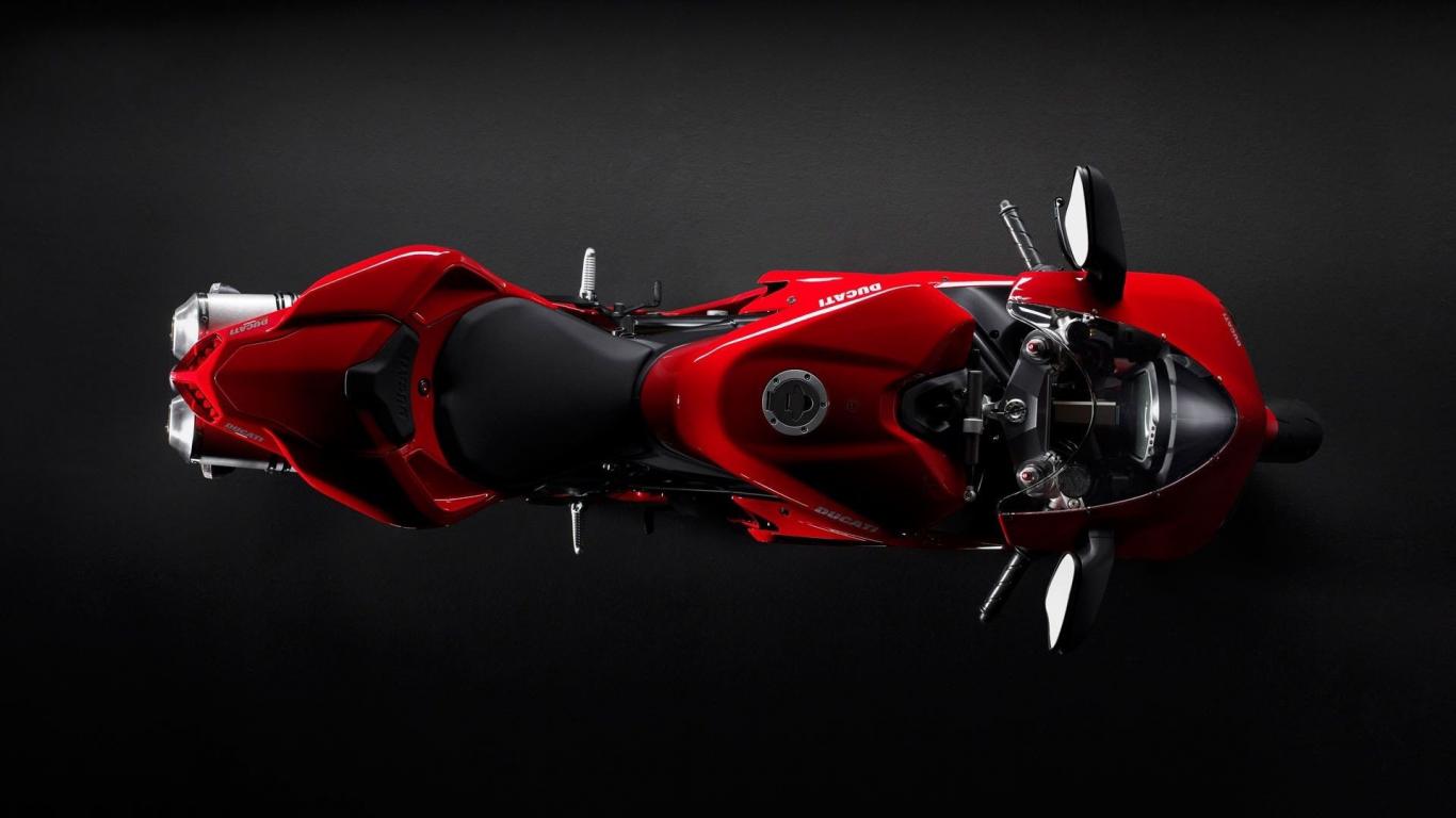 Обои Красный мотоцикл, вид сверху