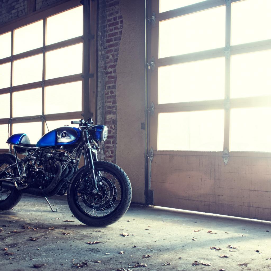 Обои Синий байк в гараже