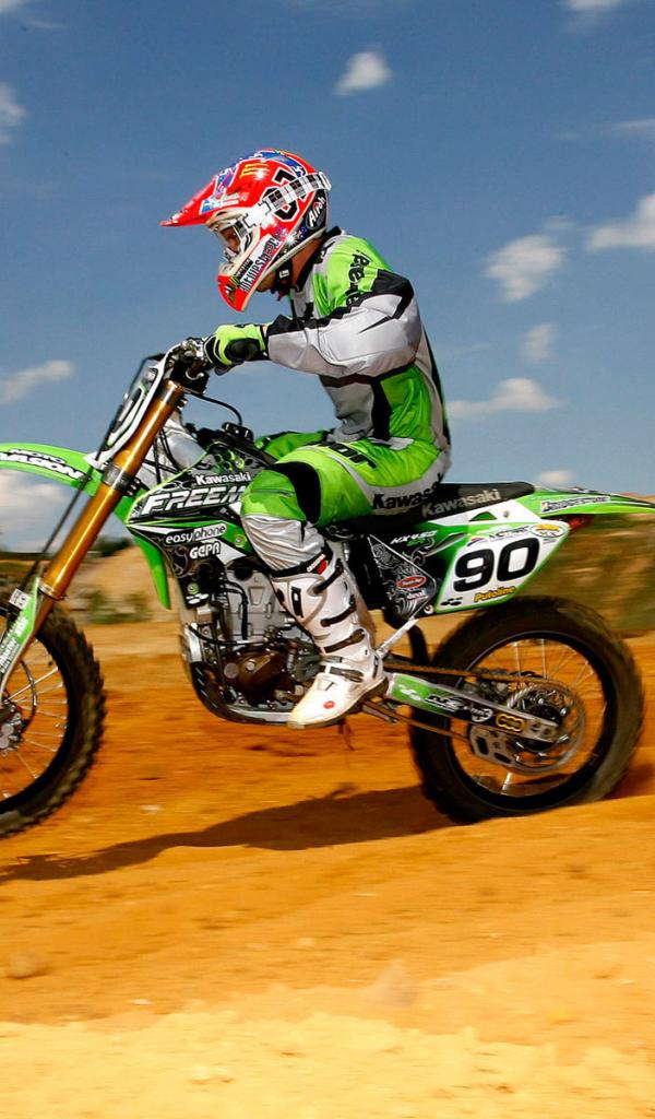Обои Новый мотоцикл на дороге Kawasaki KX 450 F