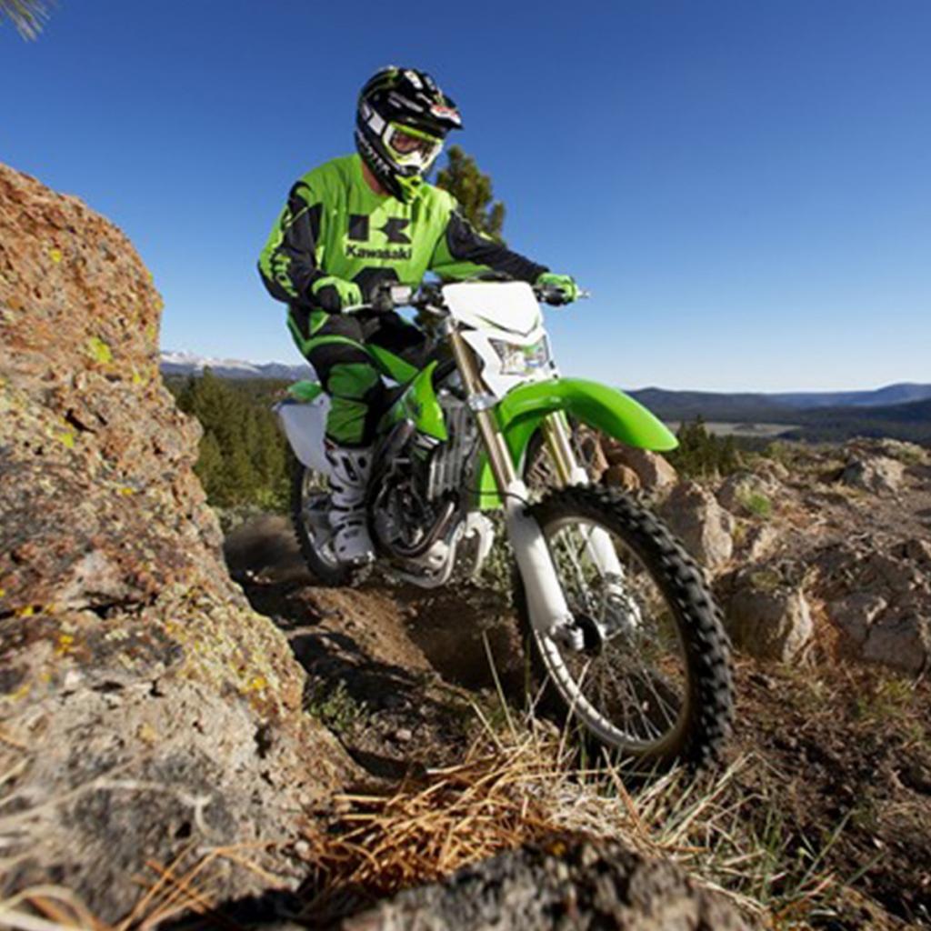 Обои Новый мотоцикл на дороге Kawasaki KLX 450 R