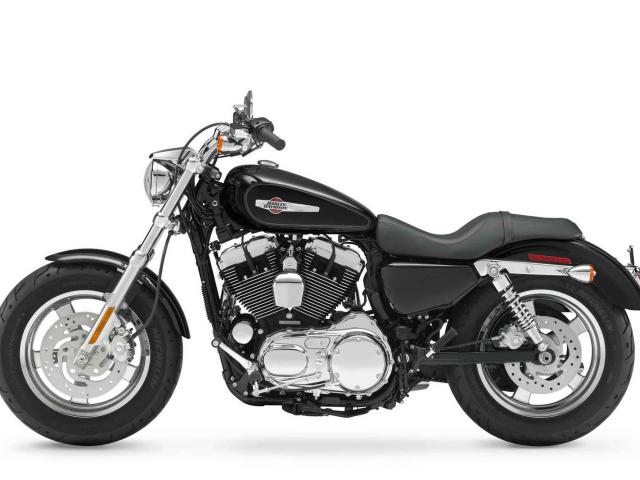 Обои Новый мотоцикл на дороге Harley-Davidson XL 1200C Sportster Custom