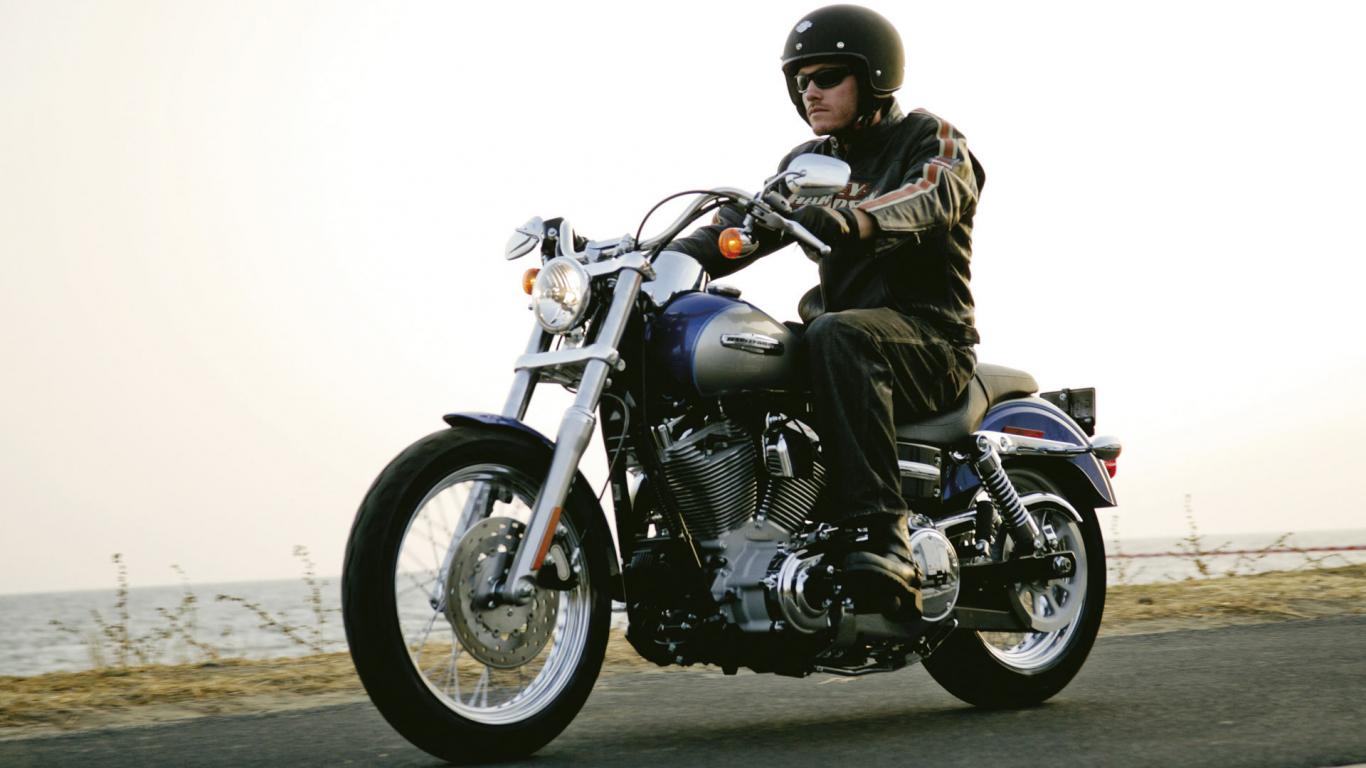 Обои Тест-драйв мотоцикла Harley-Davidson Dyna Super Glide Custom