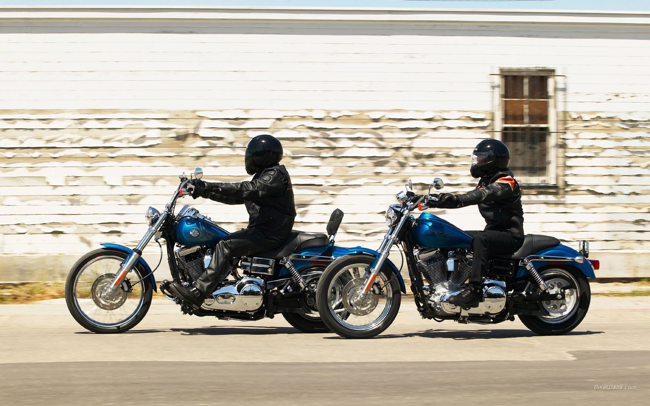 Обои Новый мотоцикл на дороге Harley-Davidson Dyna Super Glide Custom