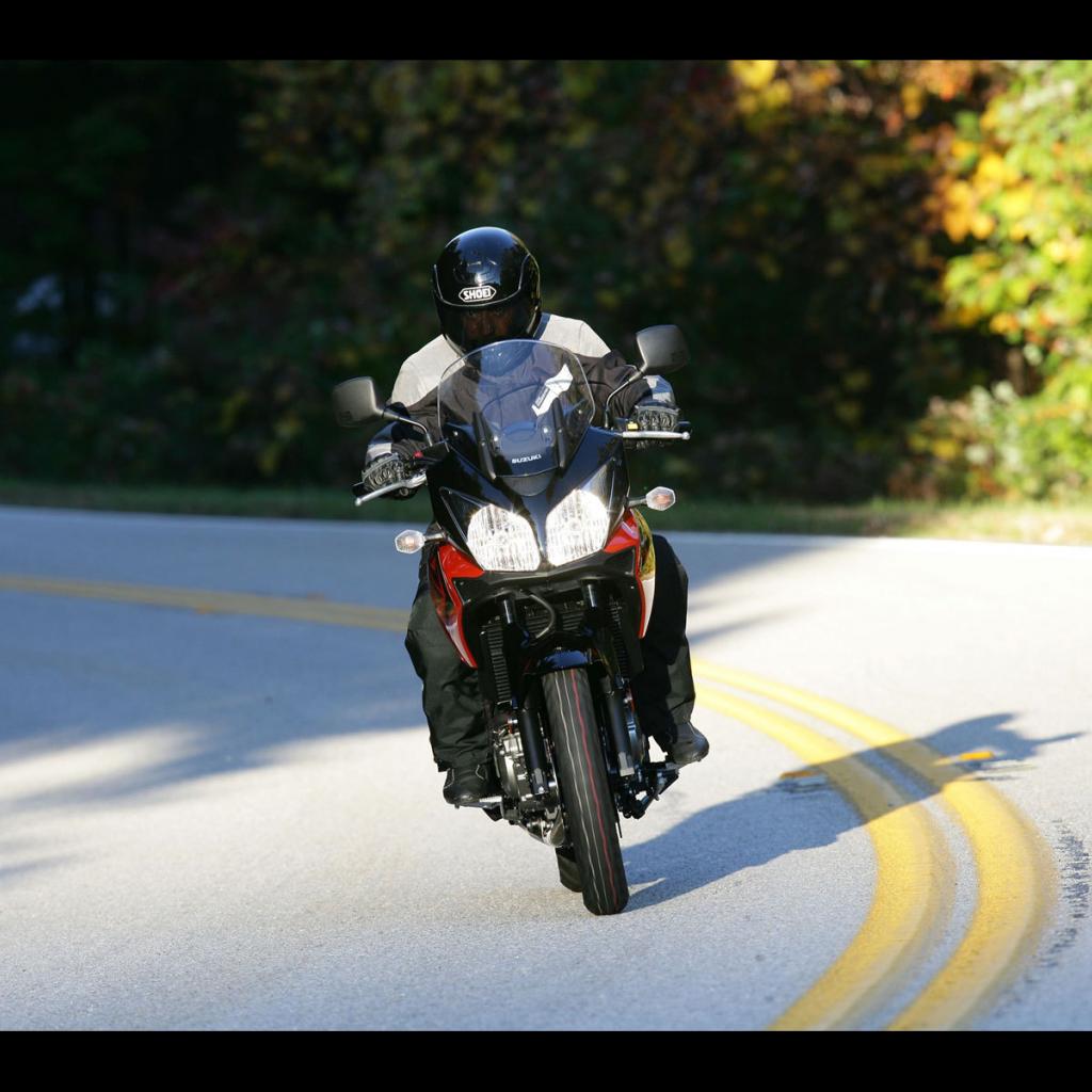 Обои Новый мотоцикл на дороге Suzuki V-Storm 650 ABS