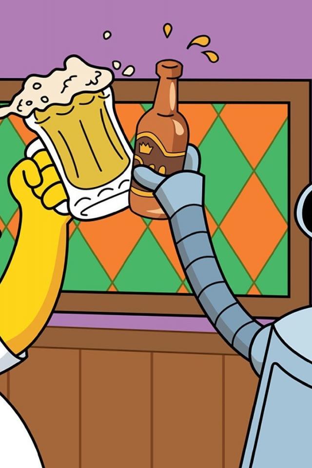 Обои Симпсон и Бендер пьют пиво