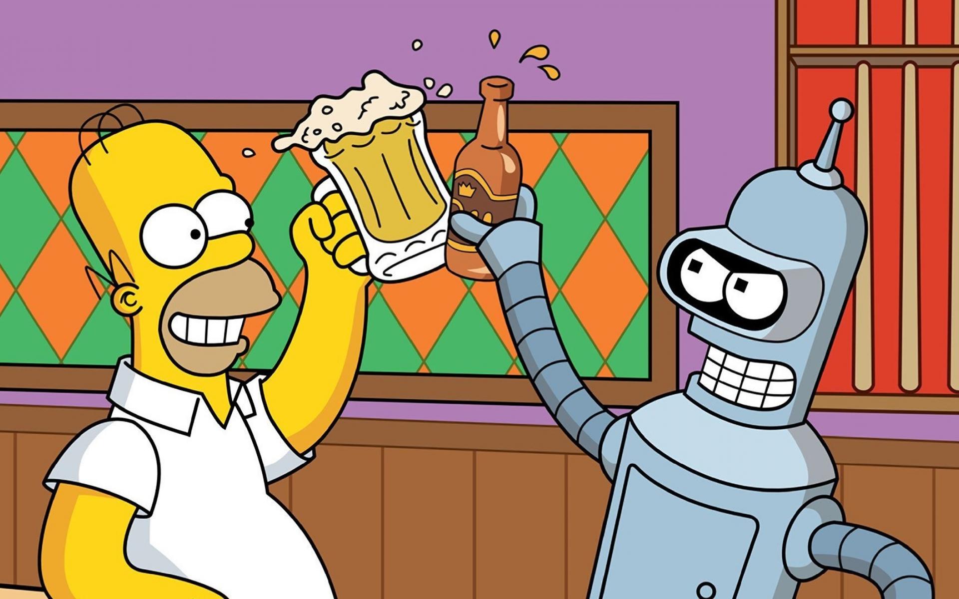 Обои Симпсон и Бендер пьют пиво
