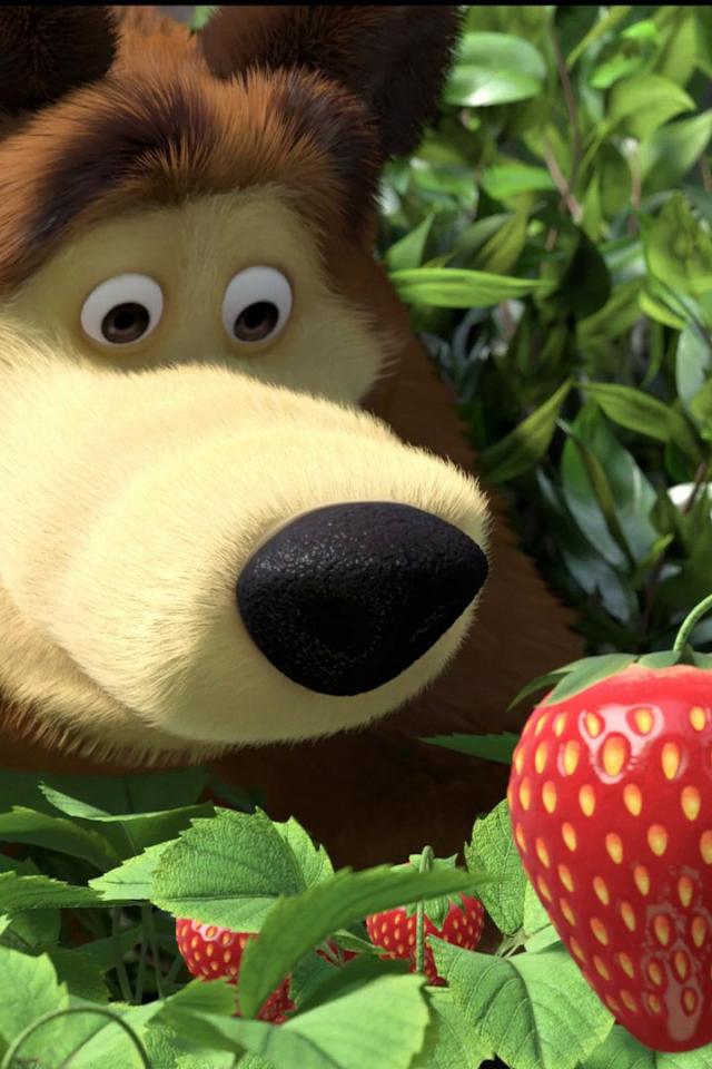 Обои Медведь нашел клубнику, мультфильм Маша и медведь