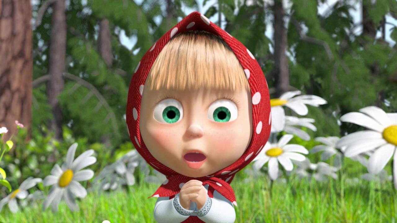 Обои Маша на фоне ромашек, мультфильм Маша и медведь