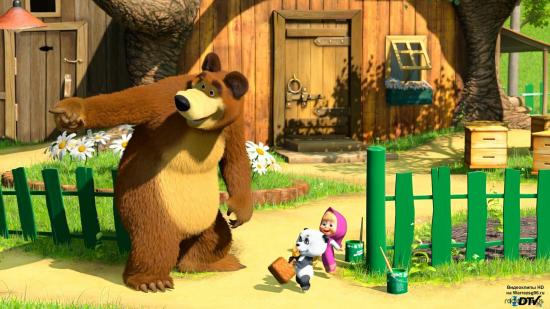 Обои Маша и медведь у дома