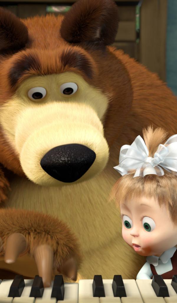 Обои Маша и медведь играют на пианино