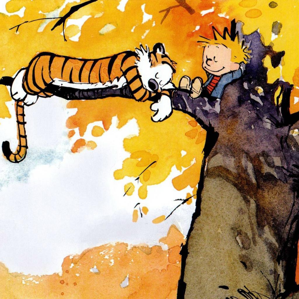 Обои Герои комикса Кельвин и Хоббс на дереве