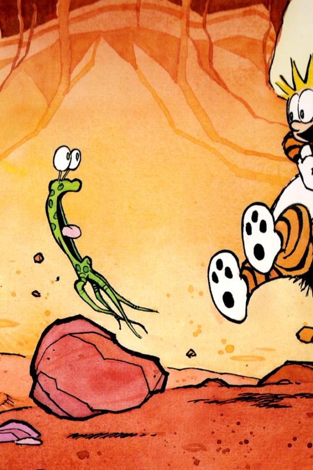 Обои Мальчик и тигр из комикса Кельвин и Хоббс