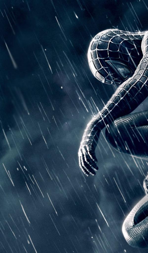 Обои Человек паук под дождем