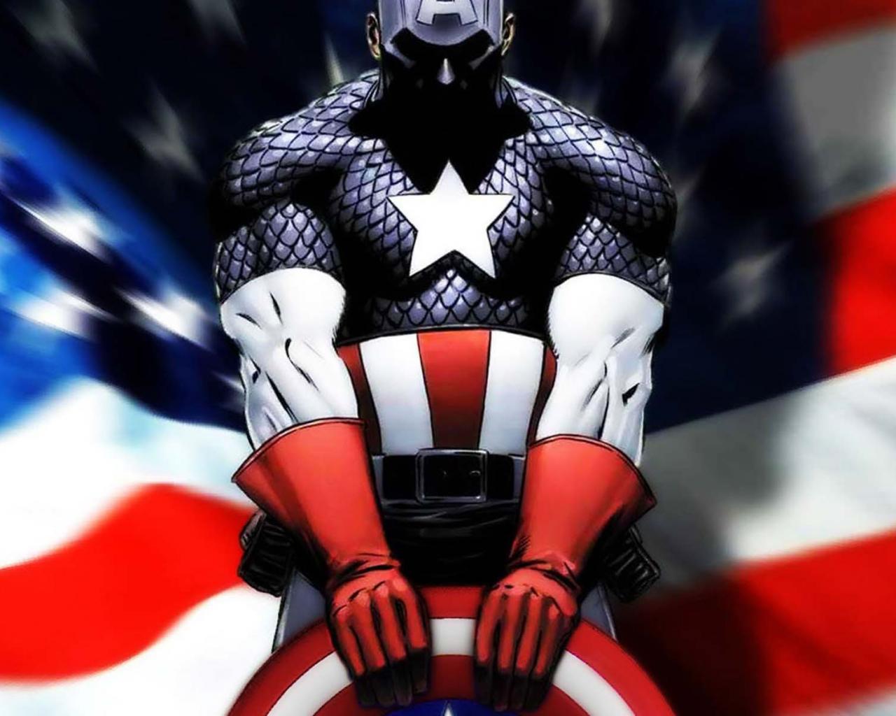 Обои Капитан Америка и американский флаг