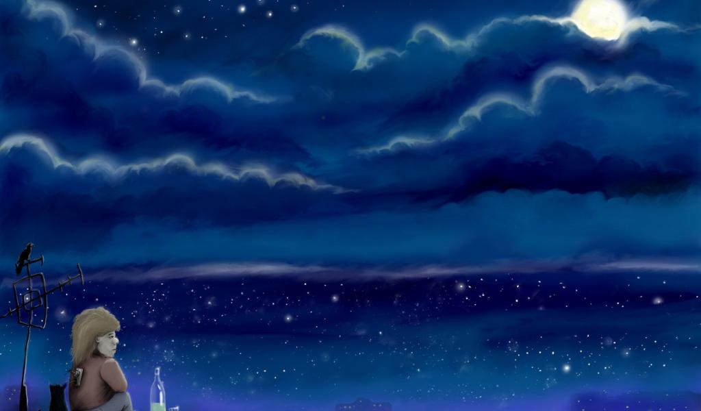 Обои Ночь, Луна, шутка, карлсон