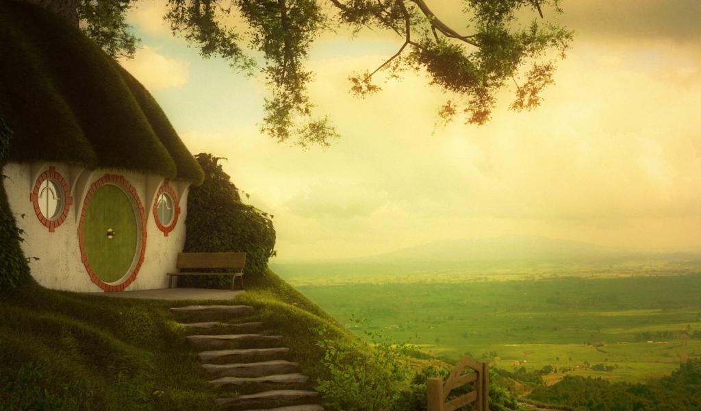 Обои Деревья, Зеленая трава, властелин колец, нора