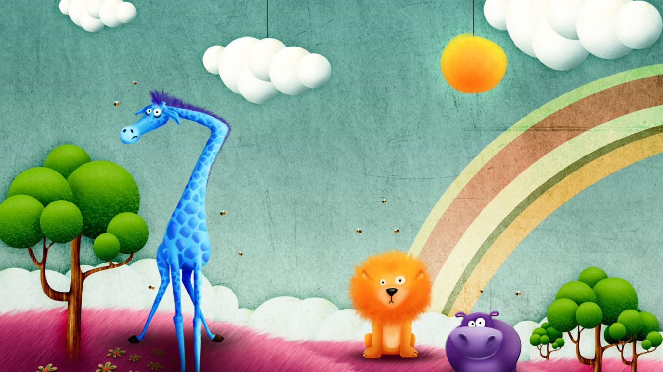 » Обои Жираф, лев и бегемот