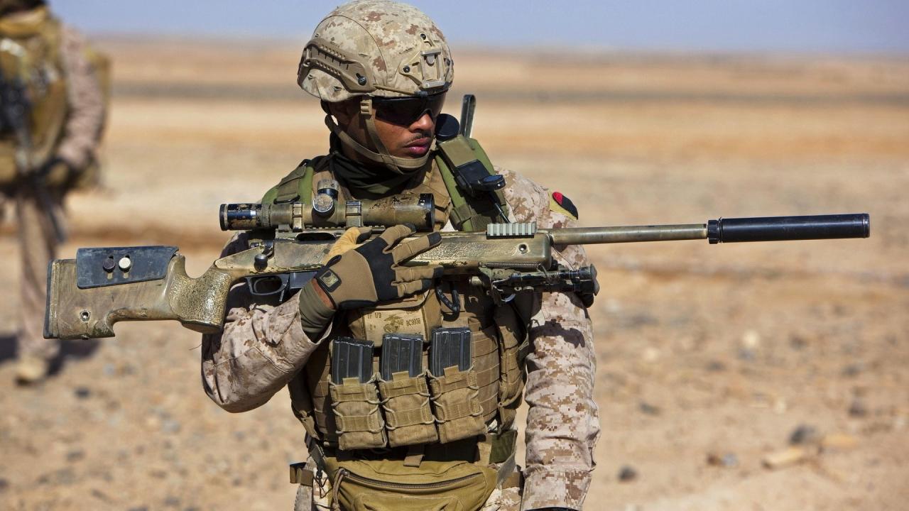 Обои Солдат снайпер в пустыне