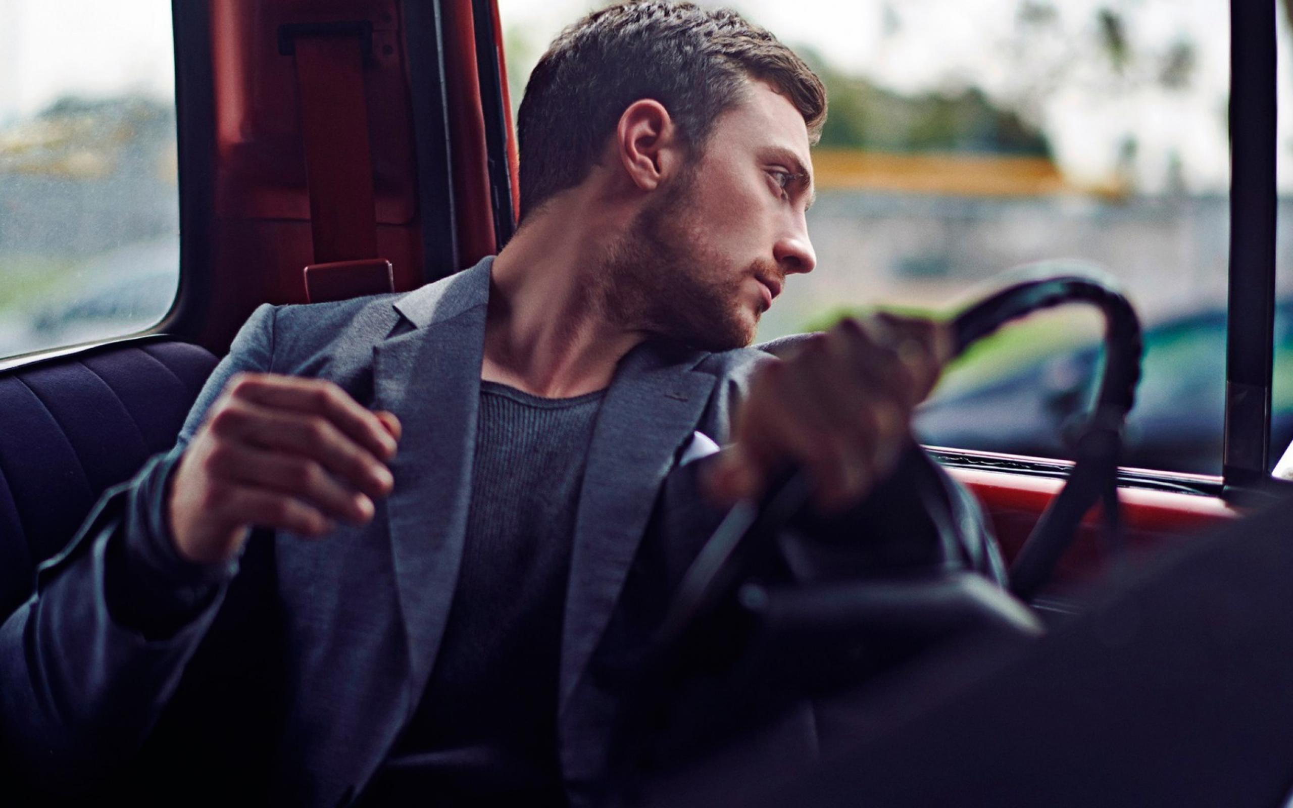 Обои Мужчина за рулем смотрит в окно автомобиля