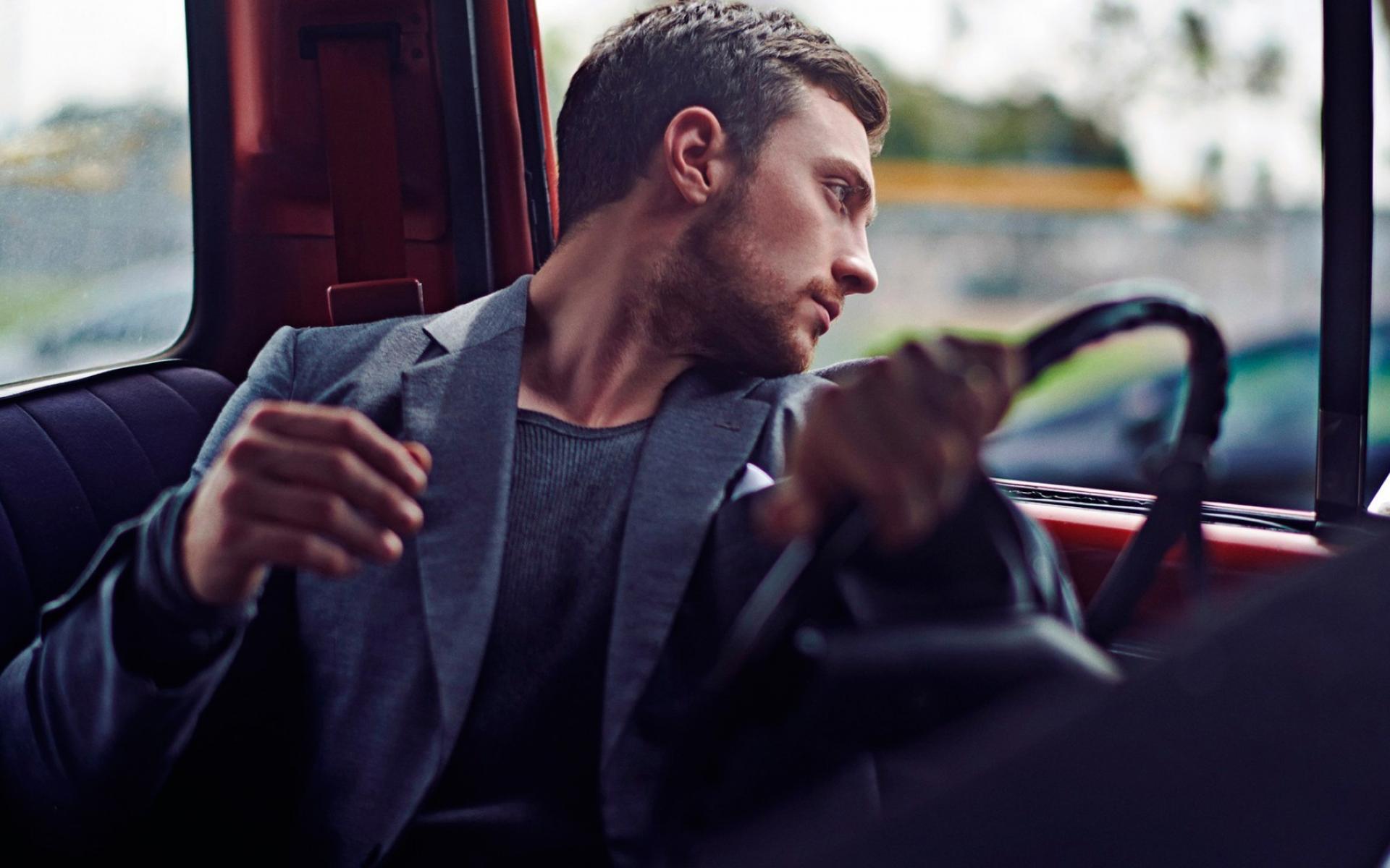Обои Мужчина за рулем смотрит в окно автомобиля