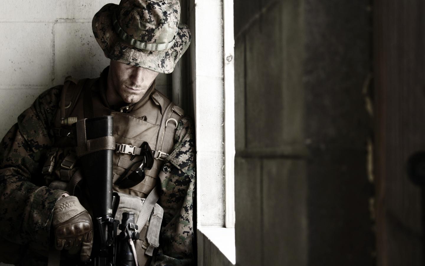 Обои Солдат около окна