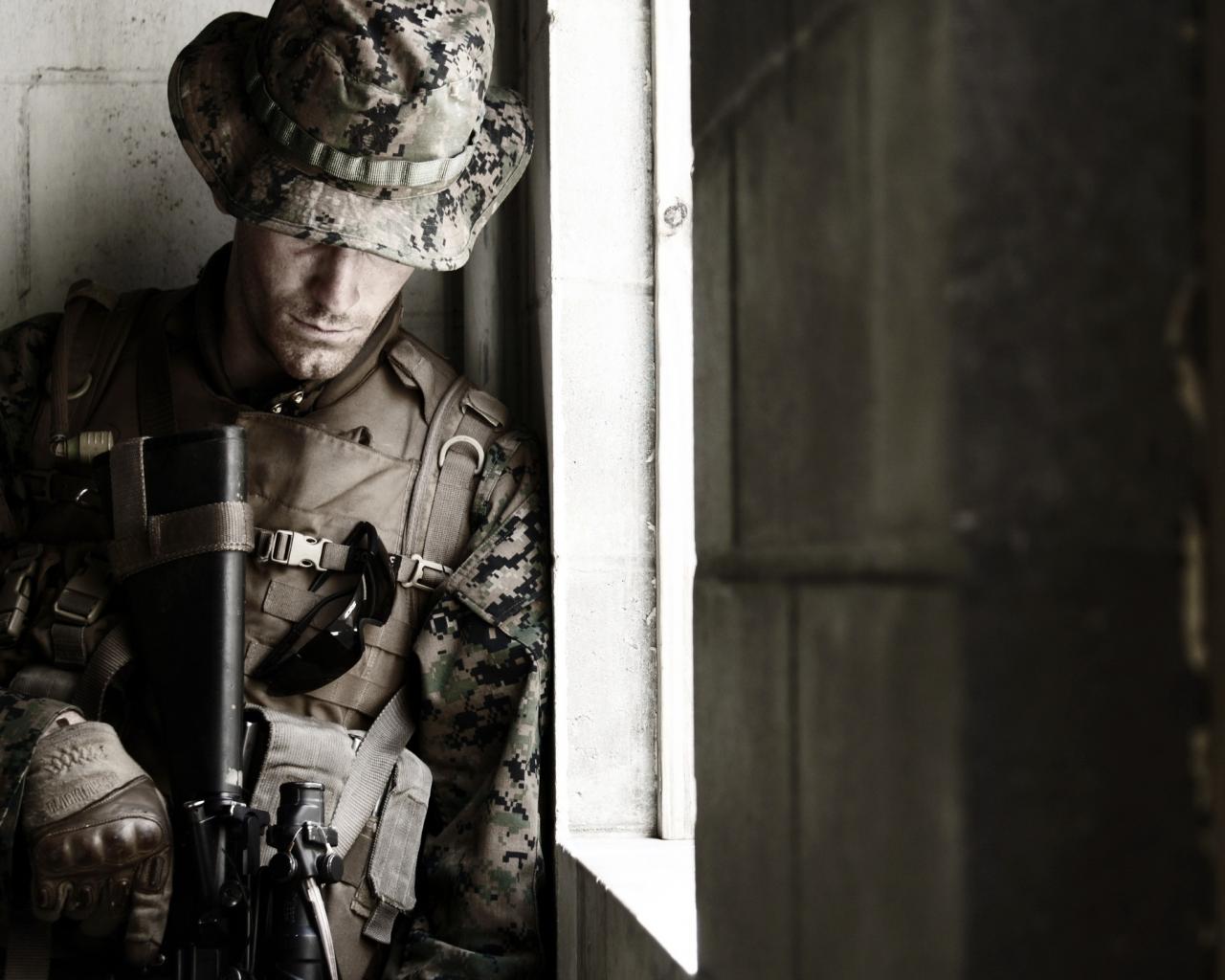 Обои Солдат около окна