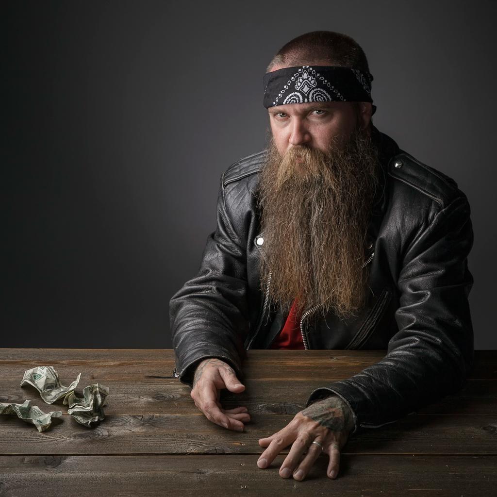 Обои Бородатый байкер за столом