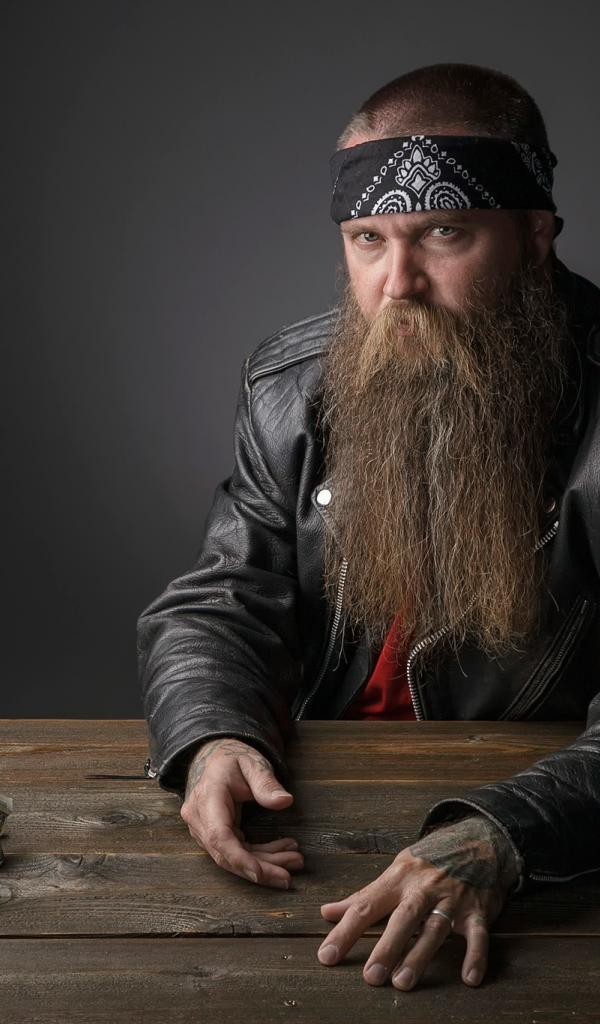 Обои Бородатый байкер за столом