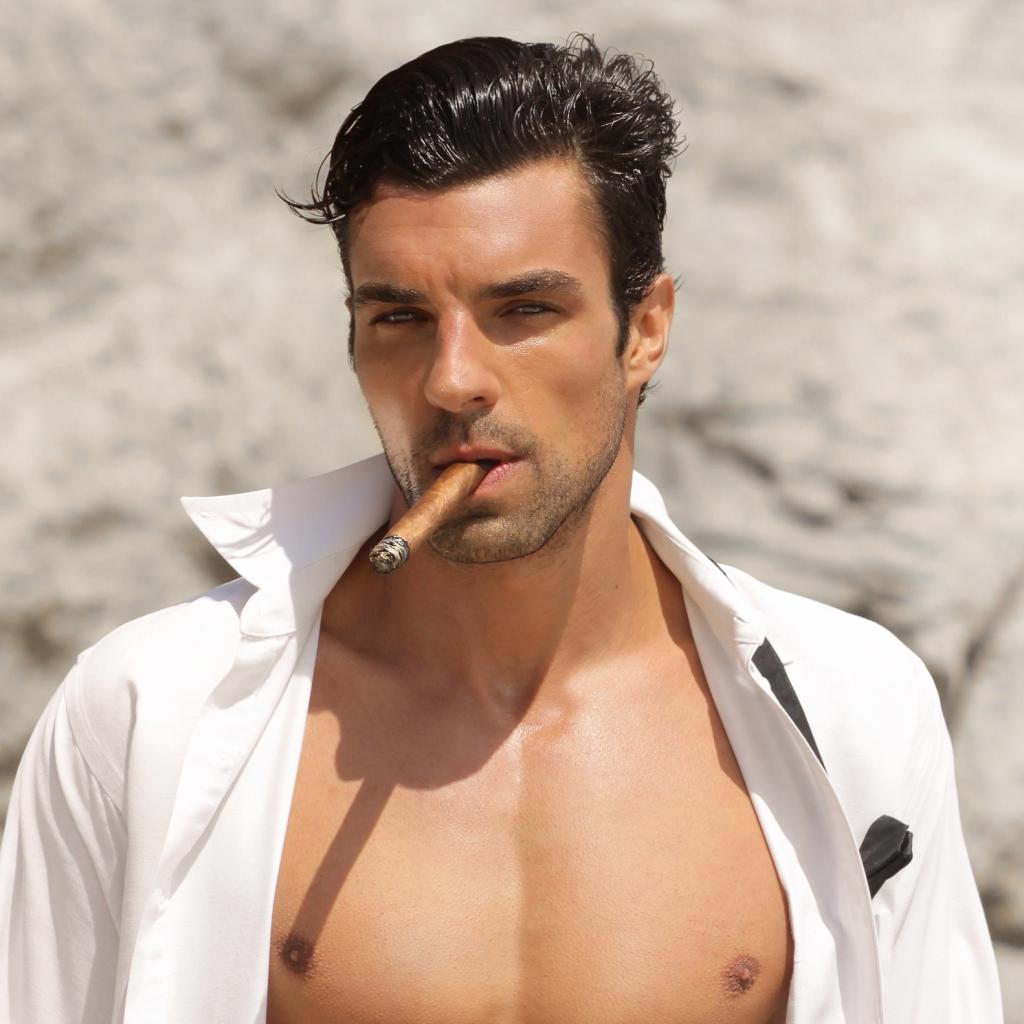 Обои Парень с сигарой в белой рубашке