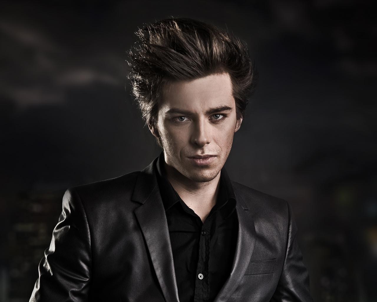 Обои Взгляд, Черный фон, Парень, пиджак