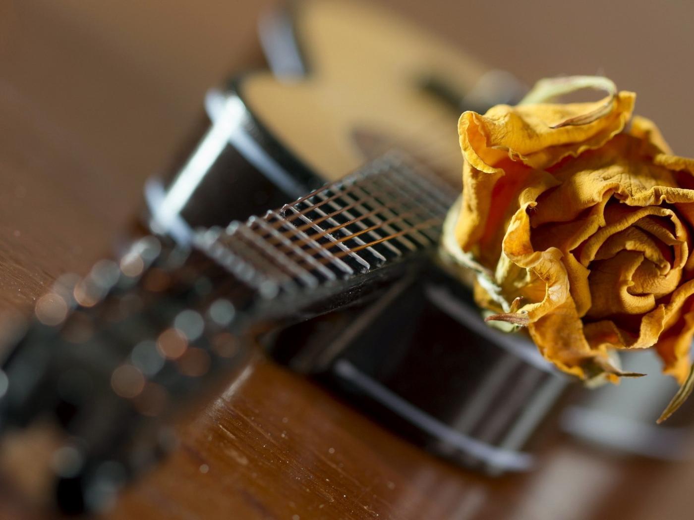 Обои Желтая роза на гитаре