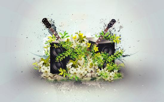 Обои Гитары и колонки в цветах