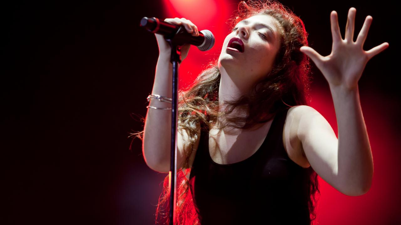 Обои Лана Дель Рей у микрофона