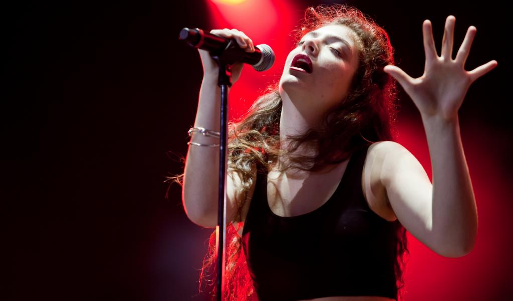 Обои Лана Дель Рей у микрофона